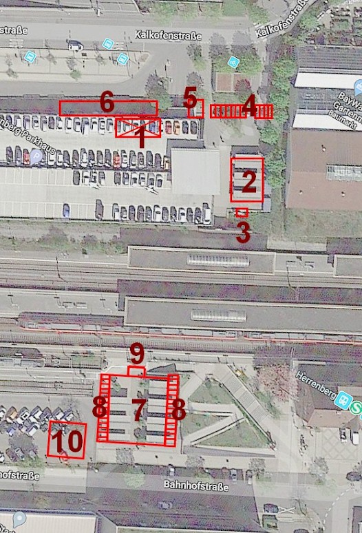 Dafür müssen drei bis sechs KFZ-Parkplätz entfallen. Diese Lösung ist teuer; auch liegt noch kein Konzept für bessere Radabstellanlagen besonders im Nord-Bereich des Bahnhofs vor. Die aktuellen "Felgenbrecher" und der Alkohol-Treff mit Pinkelplatz zwischen den Radboxen sind nicht akzeptabel. Die wenigen Radboxen sind begehrt: 40 Interessenten warten seit Jahren auf freie Boxen!