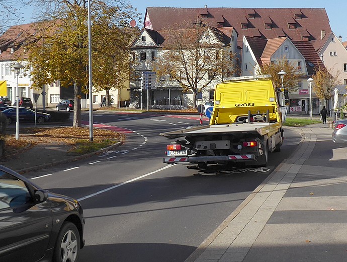 Dabei ist die Sache doch ganz einfach, wenn man sich vom Anspruch löst, die Markierungen müssen "sichere Schutzstreifen" sein. Im Prinzip handelt es sich um eine durchgängige Reihe von Fahrrad-Piktogrammen auf der Fahrbahn. So wird den Autofahrern signalisiert, dass Herrenberg eine fahrradfreundliche Stadt ist. Die Autofahrer sind gewarnt und fahren vorsichtiger und rücksichtsvoller. Radfahrer*innen sind Teil des motorisierten Verkehrs. Die Schutzstreifen sind quasi verstärkte "Achtung Radfahrer"-Verkehrszeichen, folglich sind Diskussionen über Unterbrechungen und Halteverbote auf den Markierungen irrelevant. Erst wenn die Hindenburgstraße mit einem LKW-Durchfahrtverbot sowie mit Tempo 20 - 40 klassifiziert ist, kann man diskutieren, ob die Markierungen als "Schutzstreifen im Sinne der ERA, des VCD und des ADFC" aufgewertet werden.
