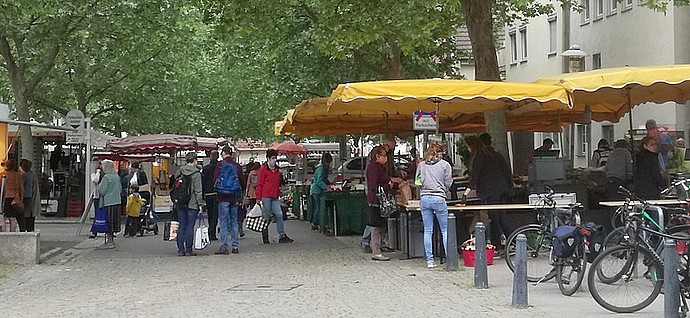 Und hier dieselbe Sicht jeden Samstag. Es ist Wochenmarkt.