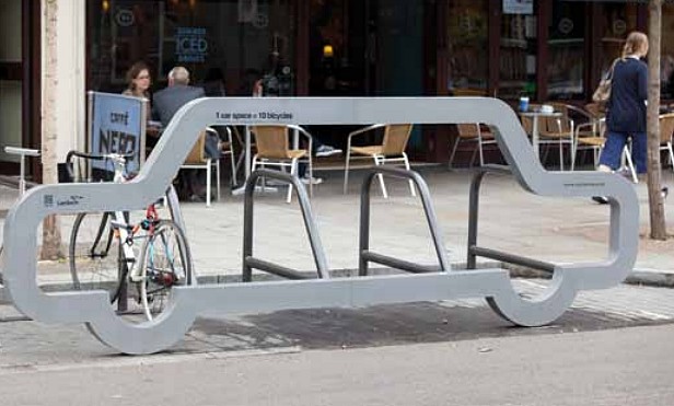 Auf einen KFZ-Parkplatz passen tatsächlich acht Fahrräder!