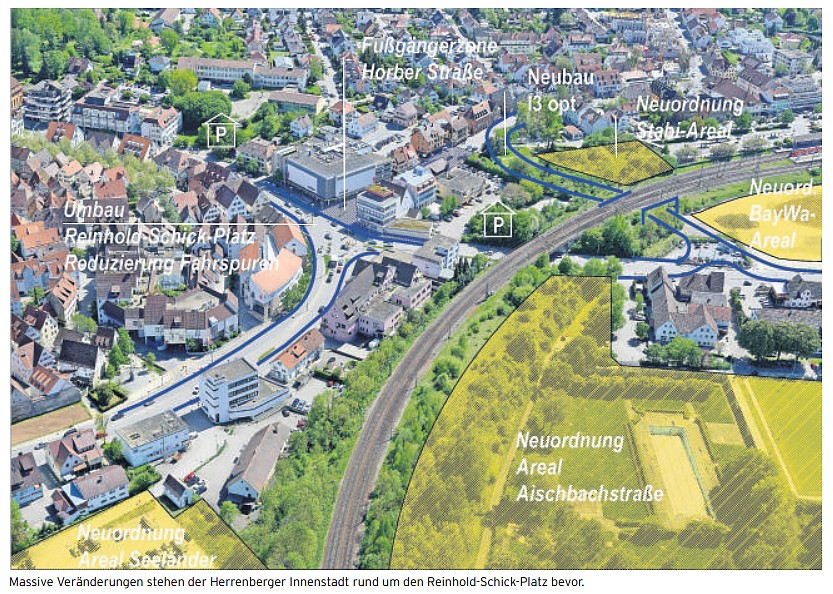 (..) In Herrenberg sind in den nächsten Jahren umfangreiche städtebauliche Neuerungen, Anpassungen und Weiterentwicklungen vorgesehen. Beispielhaft zu nennen sind die Erweiterung der Innenstadt durch Bebauung des Seeländer-Areals, die Bebauung des Stabi- und BayWa-Areals sowie die Entwicklung neuer Wohnquartiere in Herrenberg-Süd mit ca. 1.350 neuen Einwohnern. Darüber hinaus ist vorgesehen, die Altstadt zu stärken und zu beleben. Gleichzeitig besteht wegen NOx -Grenzwertüberschreitungen Handlungsbedarf. So wurde die Stadt als eine von bundesweit fünf Kommunen als Modellstadt zur Reduzierung der Schadstoffbelastungen ausgewählt.