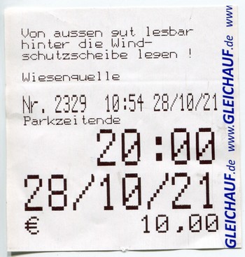 Parkplatz "Wiesenquelle" am Feldbergpass: Tageskarte, Gebühr 10 Euro.