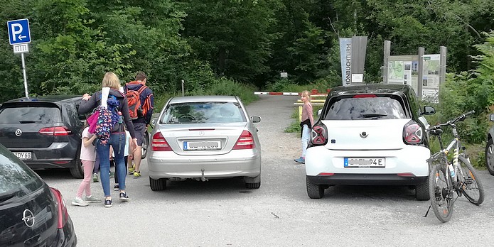 Die Parkplatznot in diesem Bereich ist bekannt. Im Sommer und an schönen Tagen kommt es häufig vor, dass die vorhandenen Parkflächen unzureichend sind und auf sämtlichen anderen Flächen – sei es auf Waldwegen, in Wiesen und Grünstreifen und sogar teilweise auch auf der L1184 - ebenfalls geparkt wird.