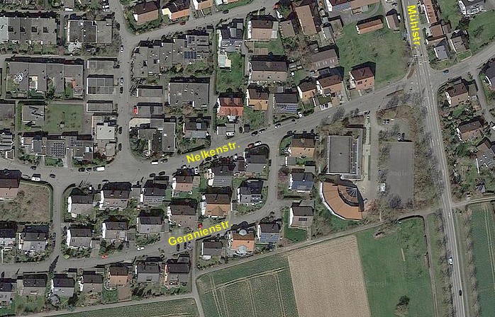 (16.03.2022) Bei der Diskussion um die sogenannten "Schottergärten" gerät die viel schlimmere Wohnungsbaupolitik der 60ger Jahre und danach aus dem Blickfeld. Man plante die autogerecht zugeteerte Siedlung. Die Google-Luftbilder zeigen den gegenwärtigen Zustand (2020).