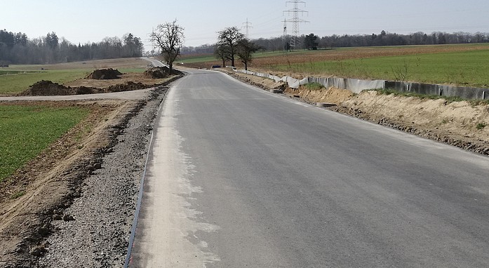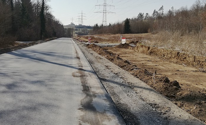 Wir stehen kurz hinter Kuppingen und schauen in Richtung Sulz. Man betrachte die Schotterungen und Abgrabungen. Radwege links und rechts hätten locker hingepasst.