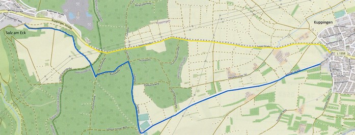 Da die Stadt Wildberg und auch der Ortschaftsrat Kuppingen eine Radwegverbindung zwischen Kuppingen und Sulz am Eck ebenfalls für erforderlich halten, finden gerade Überlegungen statt, wie ein solcher Radweg aussehen könnte. Auf Kuppinger bzw. Herrenberger Gemarkung verläuft der bereits gut ausgebaute Hesselbrunner Tal Weg. Auch das Köngissträßle ist zwischenzeitlich zum Feldweg zurückgestuft. Daher versuchen wir über diese Wege eine Lösung zu finden. Wildberg ist gerade dabei von Sulz am Eck aus einen entsprechenden Anschluss zu planen.