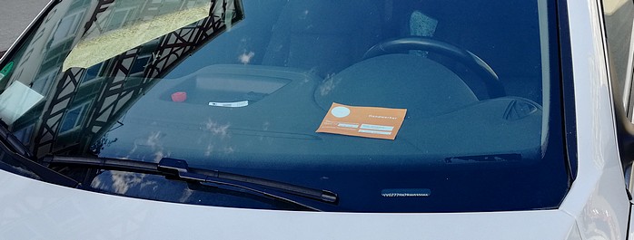 Handwerker-Ausweis hinter der Windschutzscheibe. Hält der Mann uns für blöd?? Wir haben ihn angezeigt.