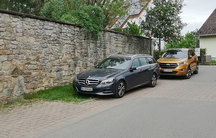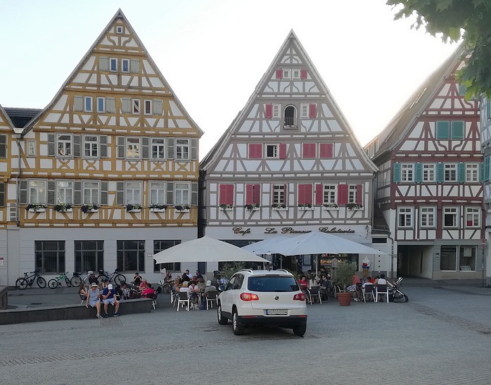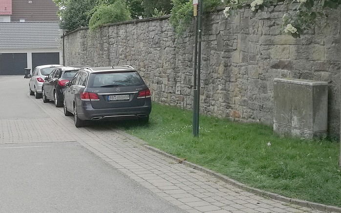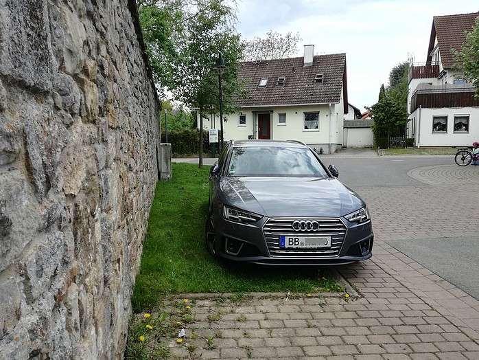 15. Juni 2022, Marktplatz Herrenberg. Das Auto parkt um 19 Uhr ein und steht um 20 Uhr immer noch da. Der Fahrer und seine Familie speisen gemütlich vor dem La Piazza. Leider dürfen wir nicht zeigen, wo sie sitzen - Verletzung des Persönlichkeitsrechts. Aber sein Auto haben wir näher inspiziert: