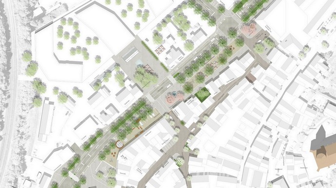 (...) Durch Auflockerung der Baumstellungen soll der Blick zur historischen Altstadt mit der markanten Stiftskirche geöffnet werden.